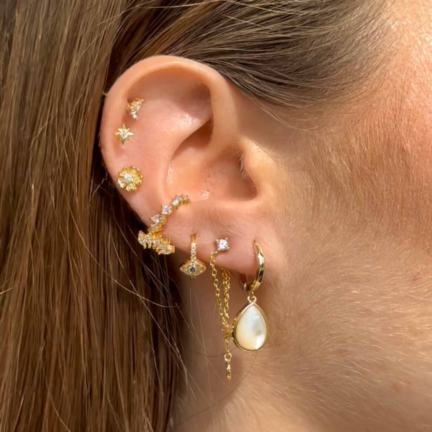 Evil Eye of Emerald Heart Huggie Earrings Gold